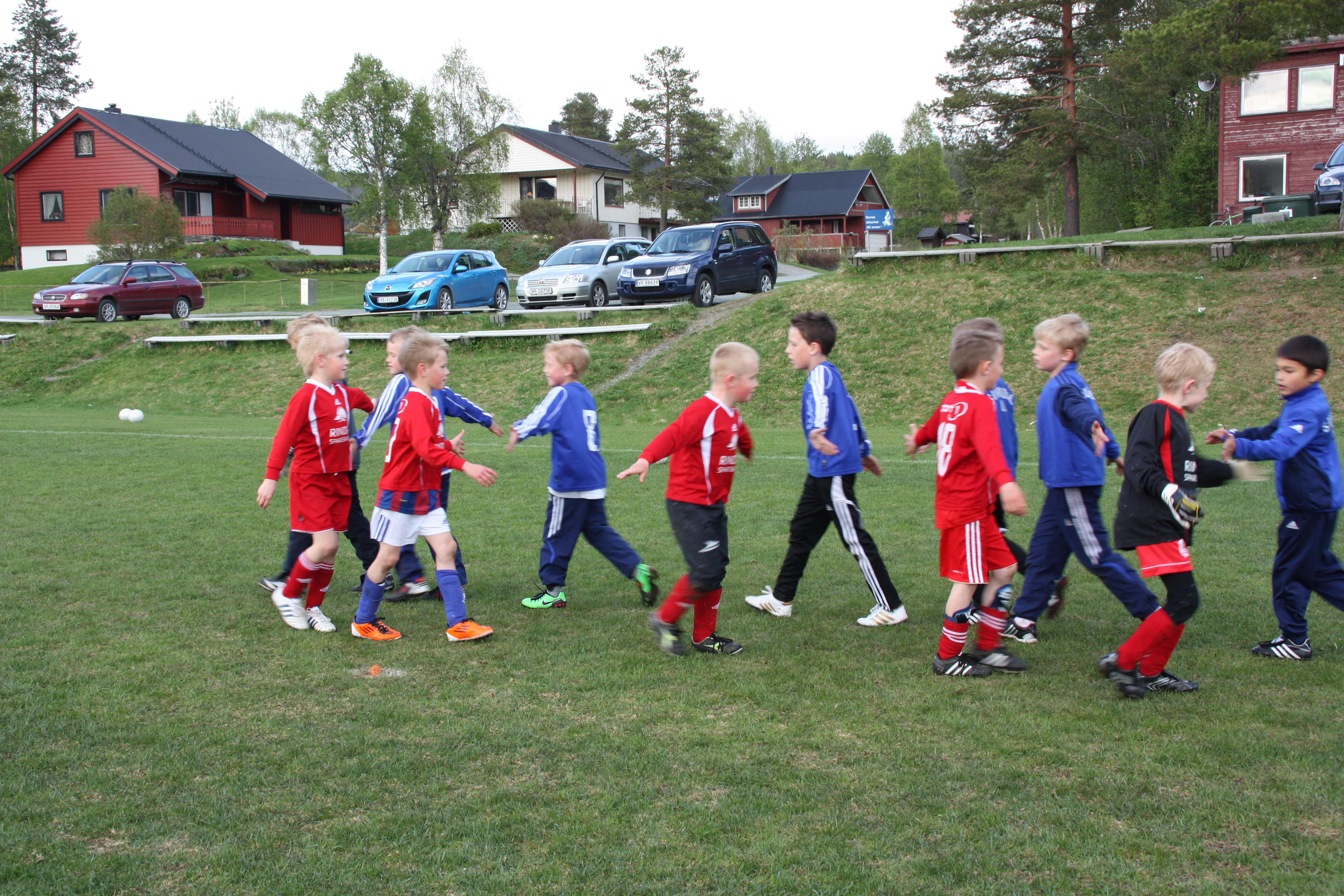 Ekte fotball med berre tøffe spelarar altså! Det var med grønske på knea og store smil vi trilla heimatt litt utpå kvelden.