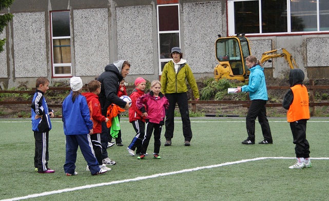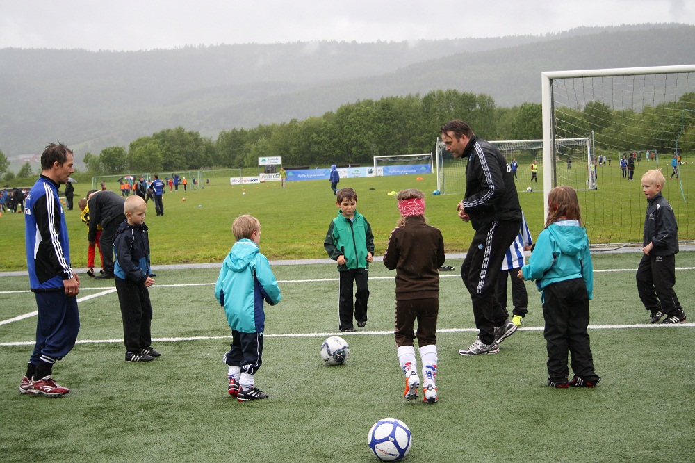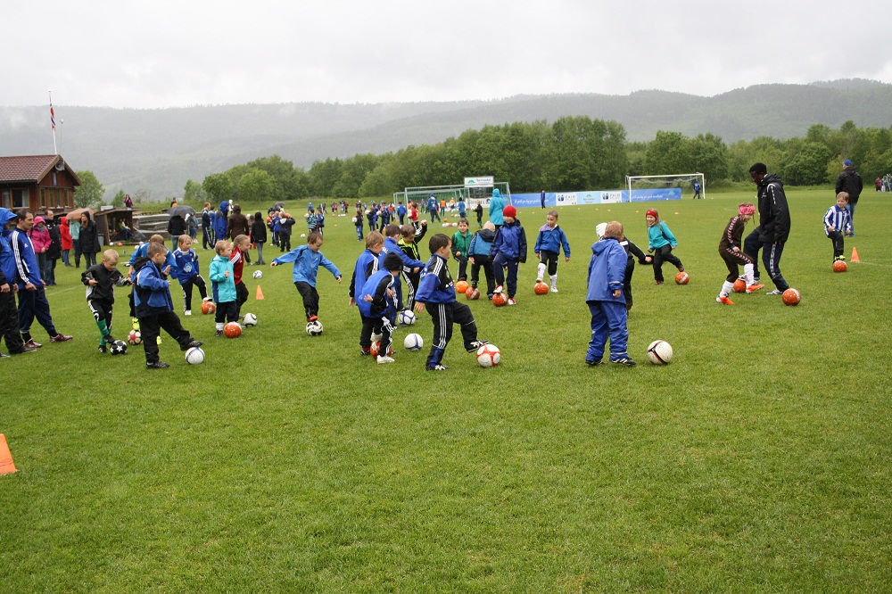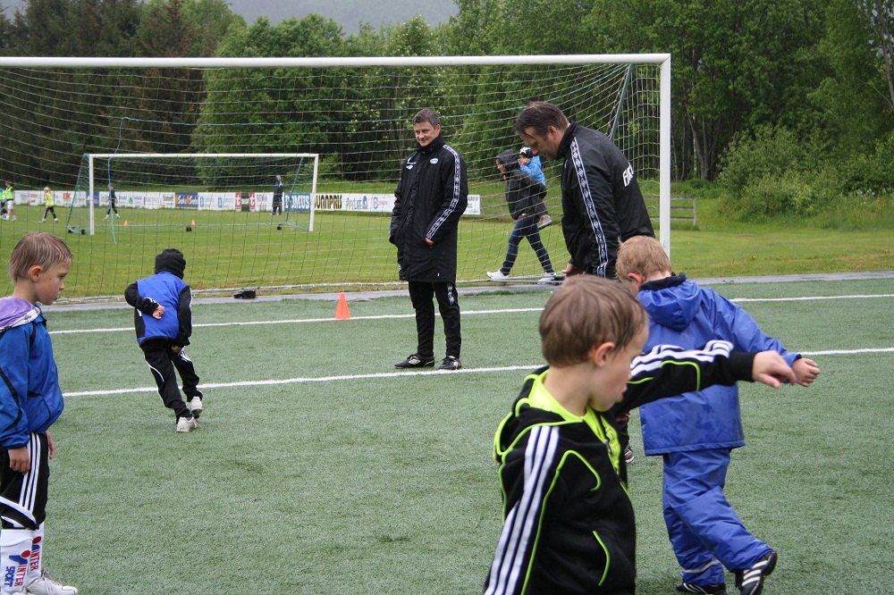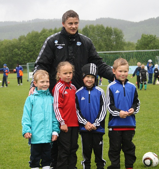 Kl. 15 ventet 200 barn og unge på en treningsøkt med spillere og trenere fra MFK. De tre banene ble delt inn i stasjoner med ulike øvelser, og barna delt inn i grupper etter alder. Alle gruppene fikk prøve seg på alle stasjonene, som ble tilpasset noe etter hvilken alder barna hadde. Solskjær deltok aktivt over hele Syltøran.